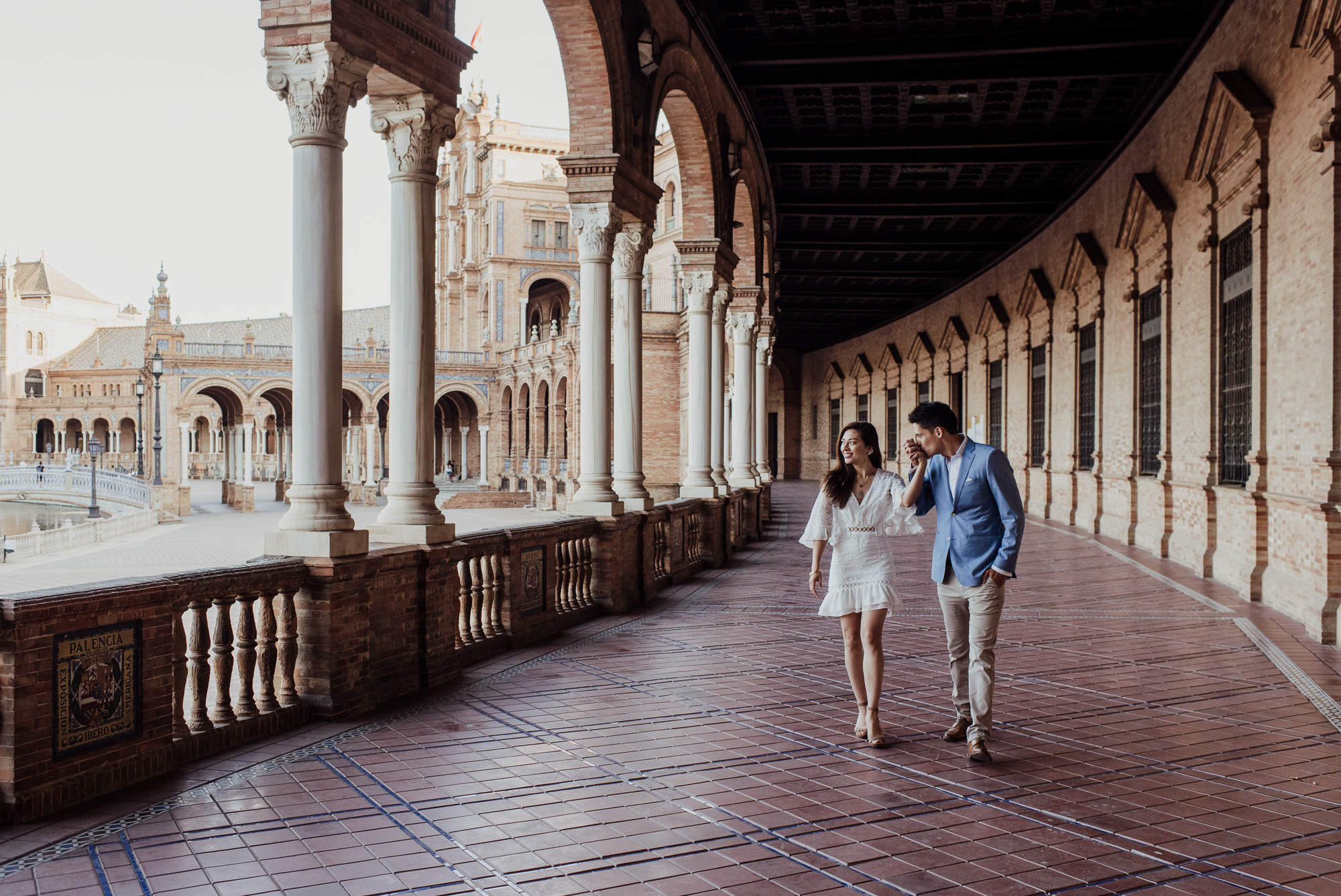 After exploring the historic streets of Santa Cruz, the session continues at the spectacular Plaza de España. This impressive square is one of the most recognizable landmarks in the city and offers a completely different style of photography.