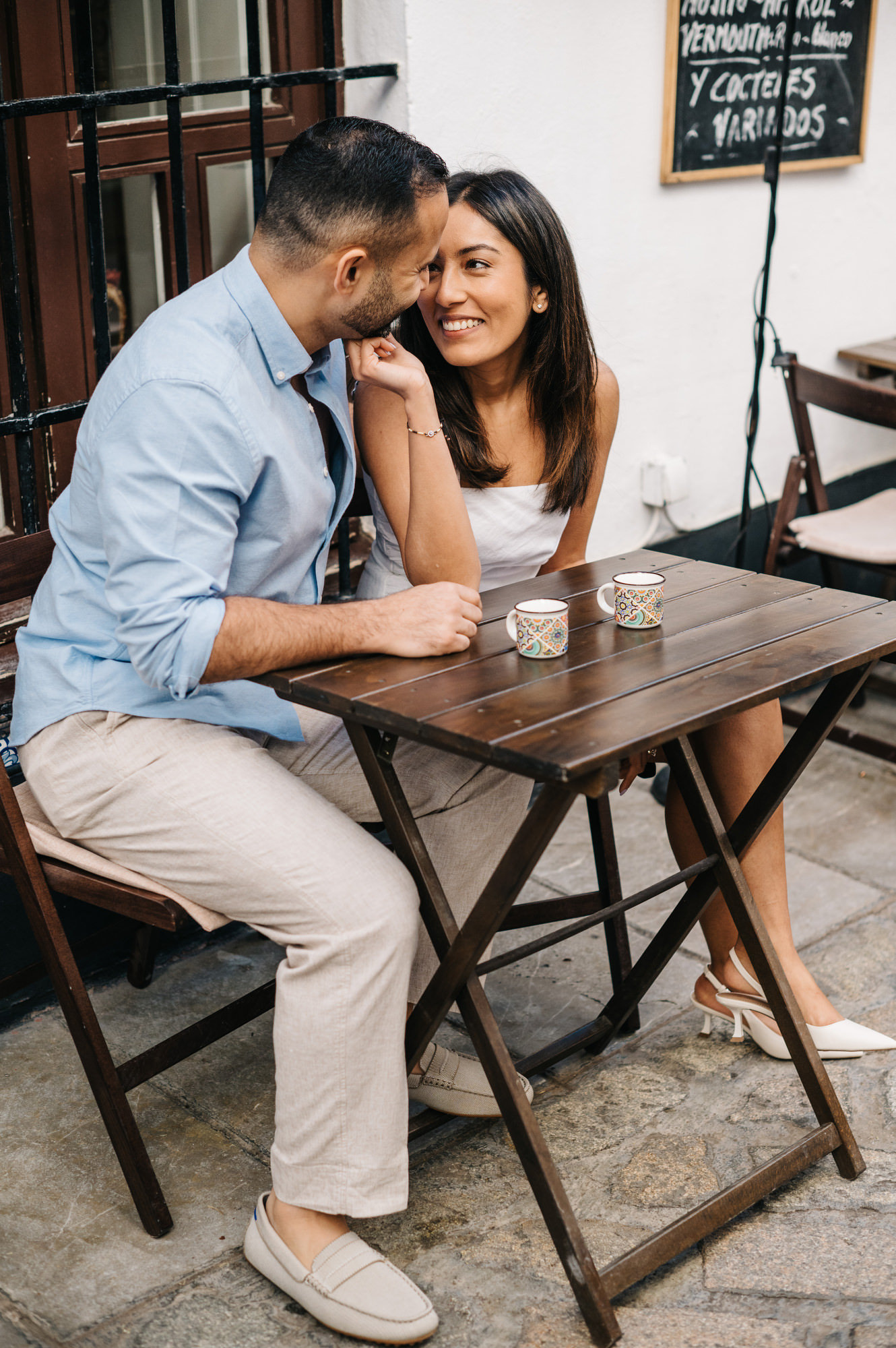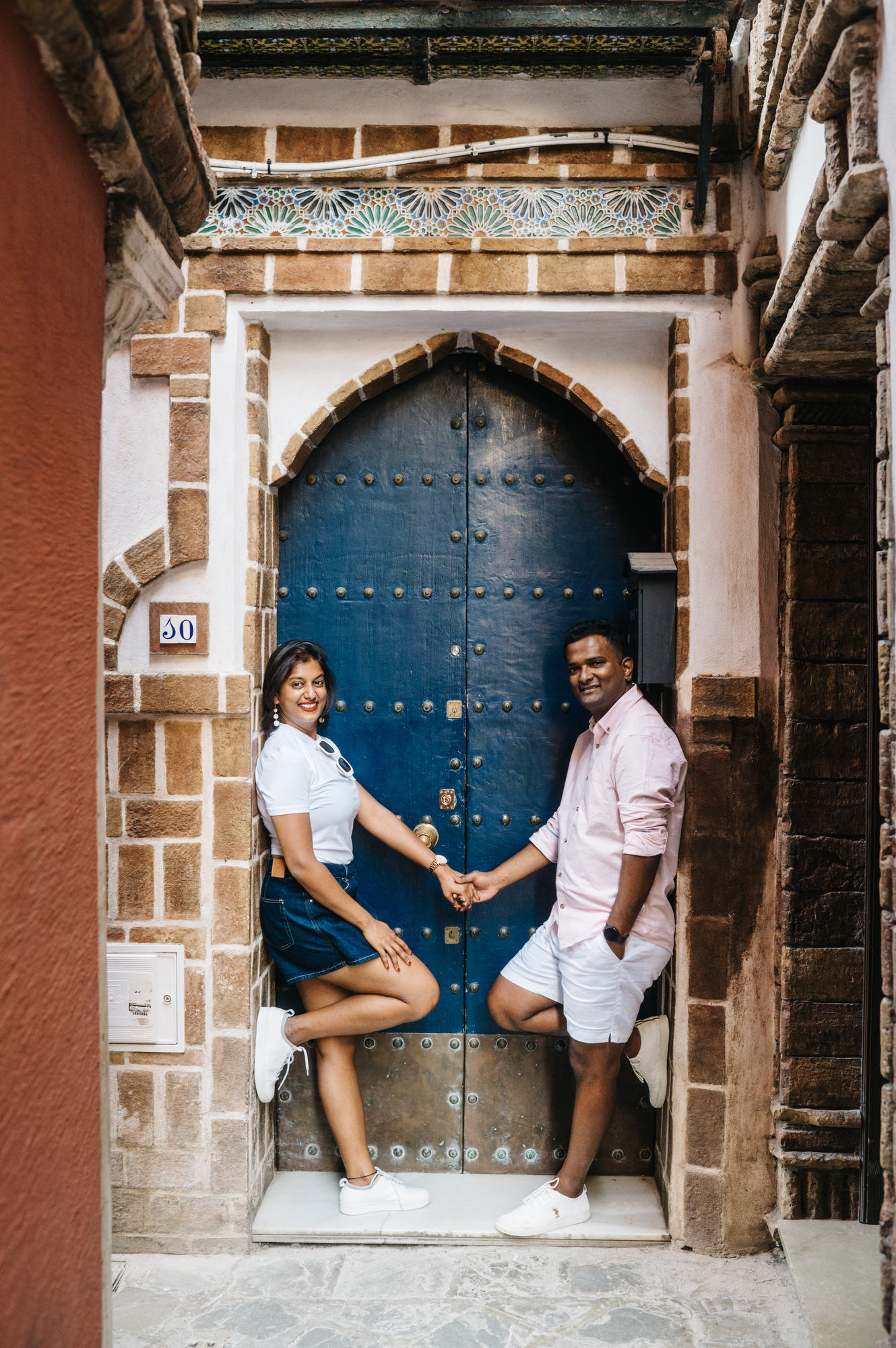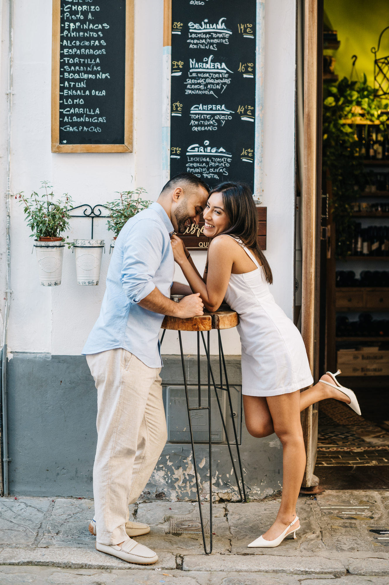 During the photoshoot we walk through some of the most picturesque streets, discovering quiet corners and beautiful backdrops along the way. The soft light reflecting off the white walls creates a warm and flattering look that works beautifully for portraits and couple photography.